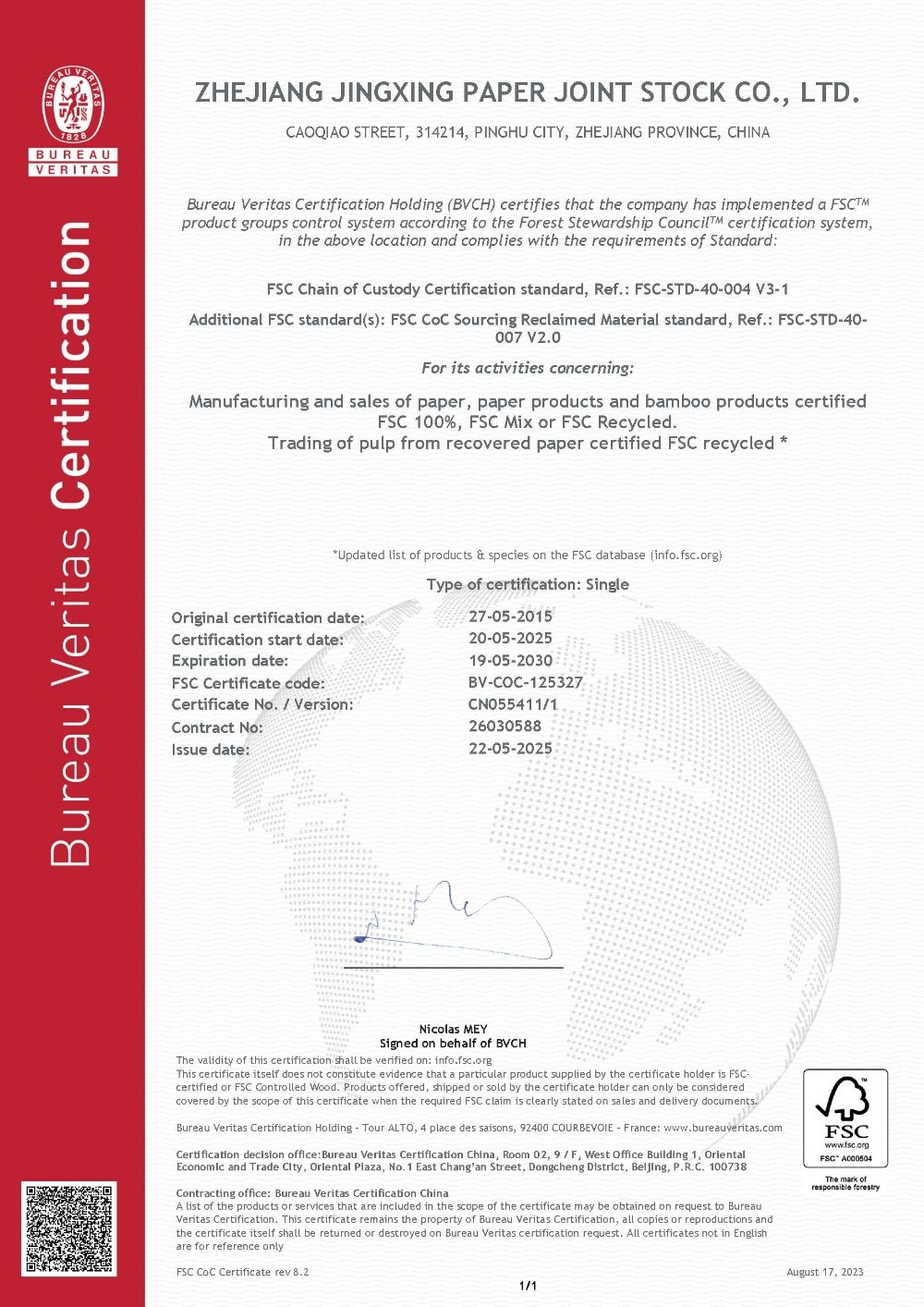 Jingxing Paper took the lead in the same industry to pass the ISO9001 quality management system and ISO14001 environmental management system certification, in 2014 passed the OHSAS18001 occupational health and safety management system certification, in 2015 passed GB / T23331 energy management system and FSC® forest system certification, passed in 2018 Certification of integration management of two industries.
