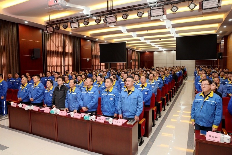 与会人员在总经理助理、造纸事业部总经理钱晓东的带领下,高举右拳向大会庄严宣誓,用掷地有声的口号展示出了勇敢接受挑战、不折不扣兑现承诺的决心。